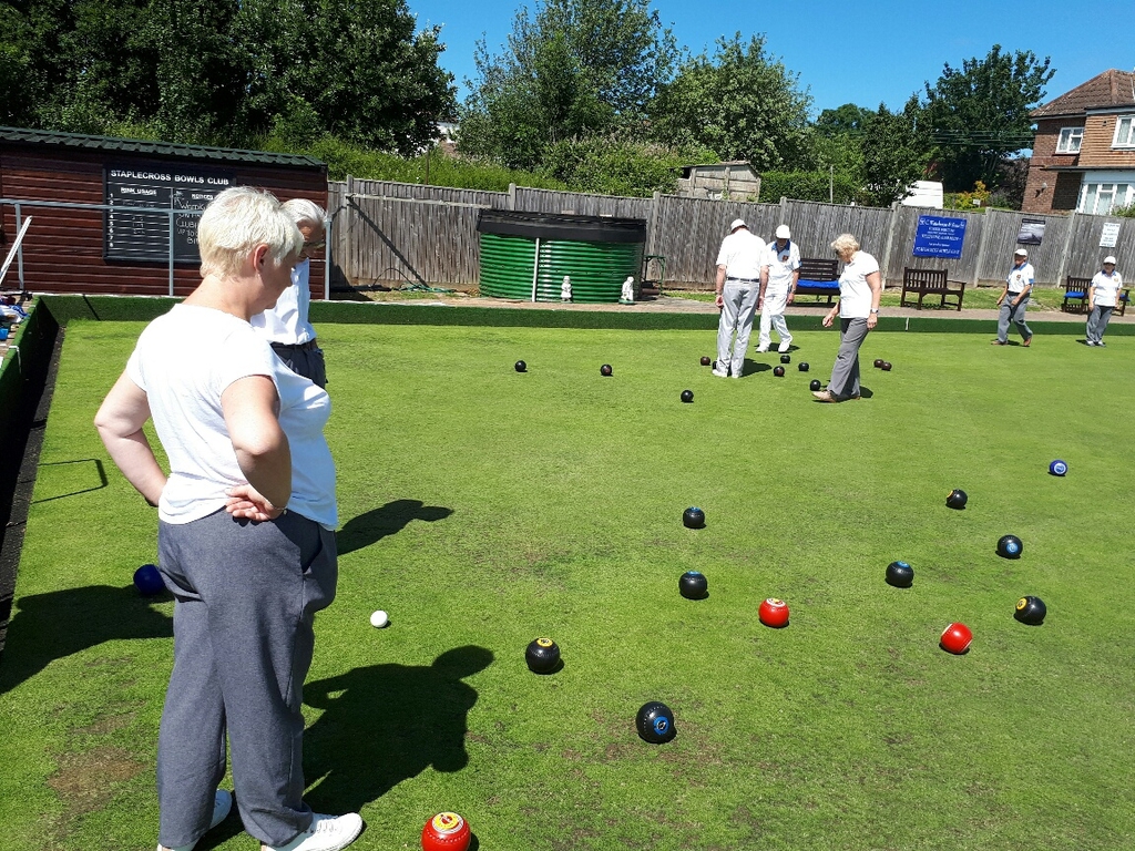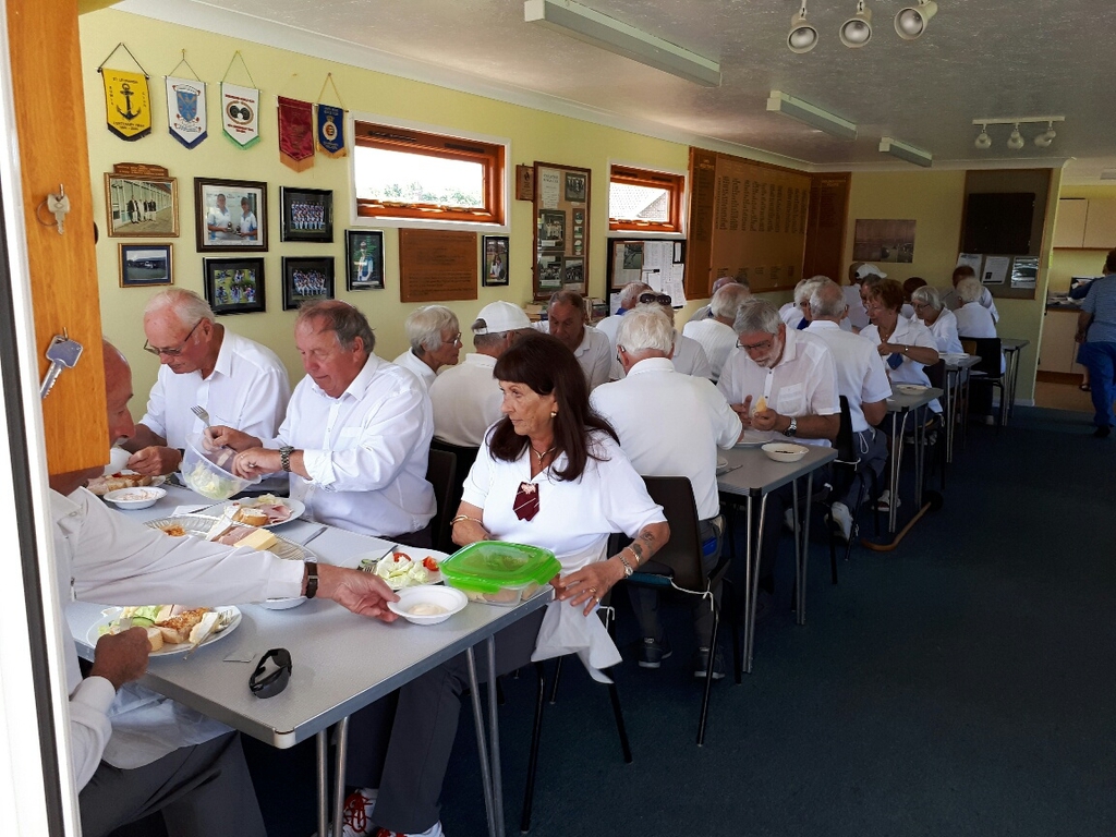 When the first round of matches had been completed, we all stopped for the traditional SPIDER fun game?? Congratulations to Sonny from Iden, who, with his skill & talent was able to get his wood nearest to the jack. For this, he was presented with a nice bottle of whisky. ( I wonder if he could have done that again?) Mmm.!