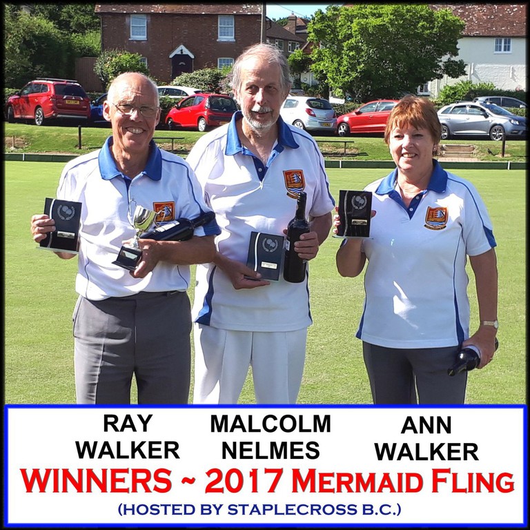 The winners of 2017 Mermaid Fling were from Tenterden B.C. (Team A) Congratulations to Ray, Ann & Malcolm.